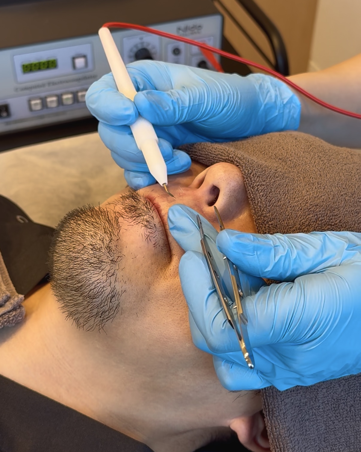 麻酔を併用しながらでも確実に毛根を処理できるよう、電流量・時間を細かく調整し、一人ひとりの毛質・肌質に合わせた最適な設定で行います。